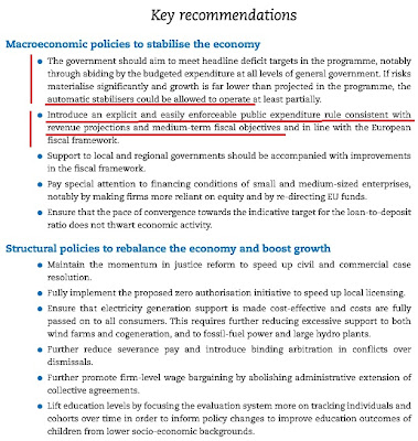 - Um segundo recado complementa o primeiro. Sugerem a criação de uma regra explícita e facilmente executável (?) da despesa pública consistente com as projecções da receita e objectivos da política fiscal a médio prazo.